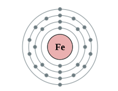 Et jernatom omgitt av sin elektronsky. (Materialteknisk lærebok)