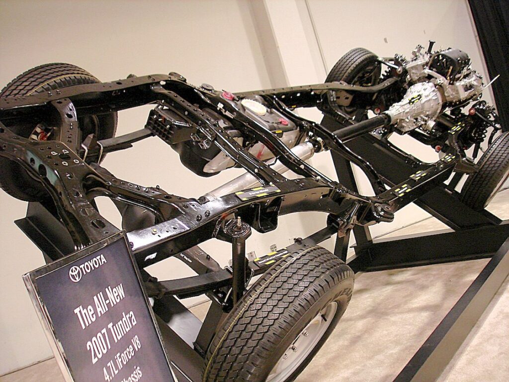 Dette bildet fra Toyota viser stigerammen i en tradisjonell 4WD, som pickuper og større. (Foto: Toyota)